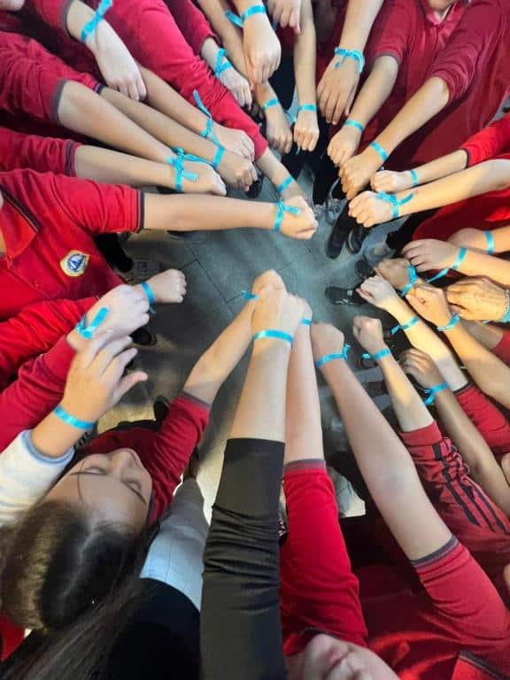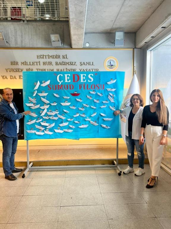 ÇEDES projesi kapsamında, değerler eğitimi kulübü öğretmenlerimizin öncülüğünde, Gazze' de yaşanan zulme dikkat çekmek ve barışa olan umudumuzu ifade etmek için öğrencilerimiz anlamlı bir adım attı. Bileklerine mavi kurdele takarak Sumud Filosunu desteklediklerini gösterdiler.